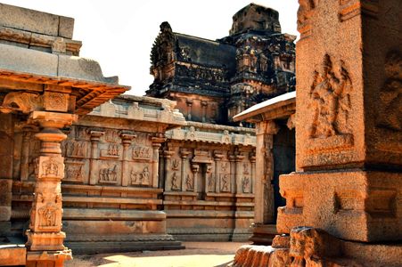 The most splendid monument of Hampi is undoubtedly the Vithala Temple Complex . If one wants to witness the competition between man and Vishwakarma (the Architect God of Hindus), this is the place on earth. Any number of words would fail to do justice to this wonderful monument. Legend has it that Lord Vishnu found it too grand to live in and thus returned to his own humble home. The construction of this temple started during the reign of King Krishna Deva Raya in the year 1513 AD. The project was so colossal that the additions continued for almost five decades until the Empire fell down in the year 1565 AD.
