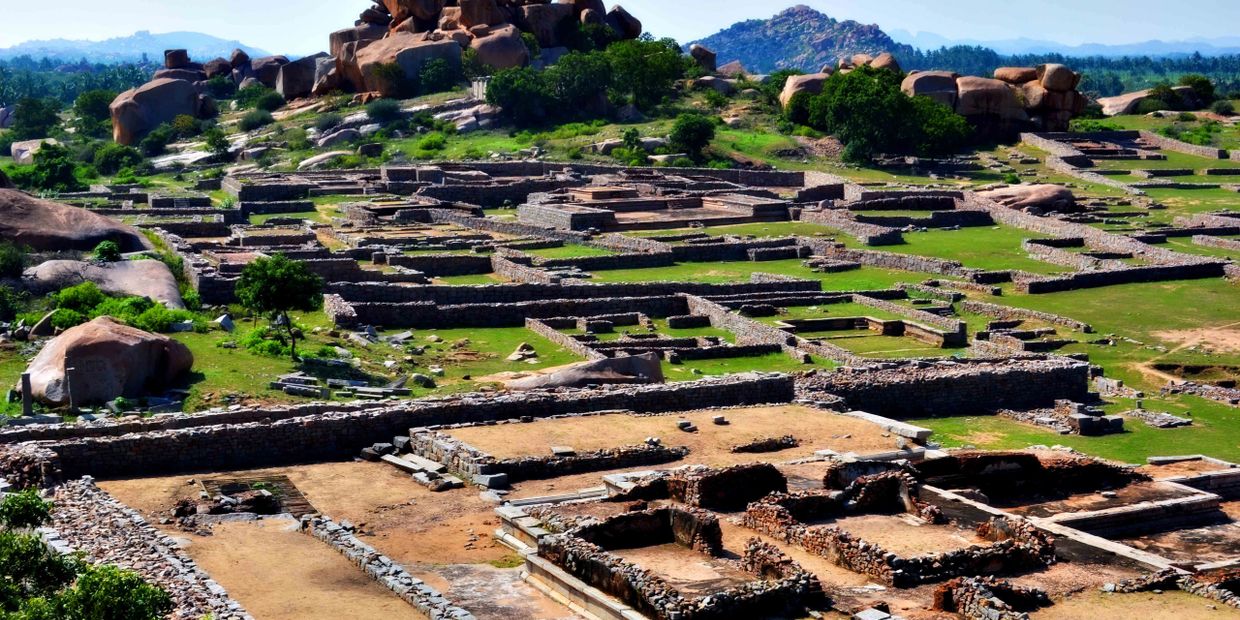 The seat of the erstwhile kings, this is a fortified campus. Royal enclosure is a sprawling area The area between Hazara Rama temple and the Mahanavami dibba is a complex of great many ruins of secular structures. Here are the remnants of Durbar Hall, King Palace, Stepped Tank, Underground Chamber, the mint and the elaborate water works, aqueducts, tanks and drains.